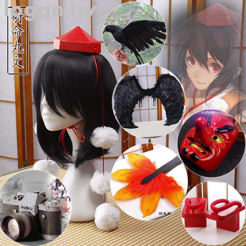 周邊 東方射命丸文cos道具楓葉扇子假發小氈帽子相機木屐翅膀面具烏鴉 蝦皮購物